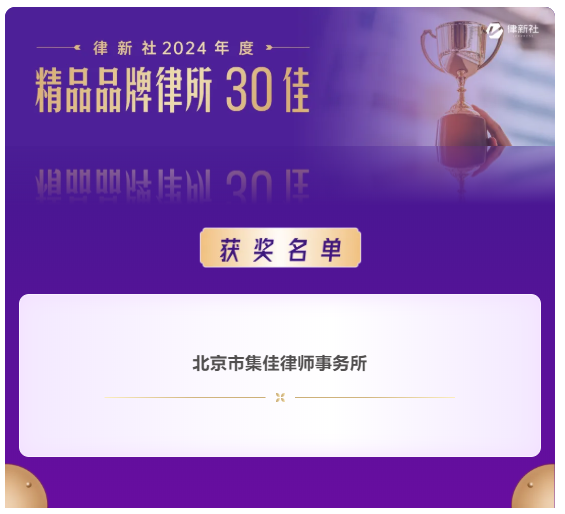 >开云>关于我们>荣誉概览>2025>开云入选律新社2024年度“精品品牌律所30佳” 集佳代理案例获评“律新社2024年度标杆案例”